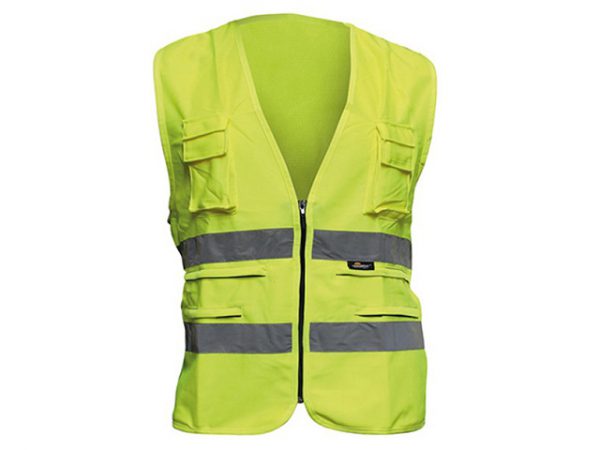 Descripción: Chaleco Alta Visibilidad 100% poliéster. Dos bandas reflectantes. Cierre con cremallera. Multibolsillos.