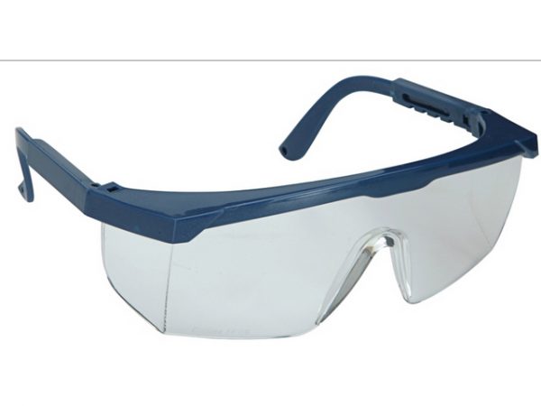 Descripción: Gafa monolente de una sola pieza. Tira de poliamida azul. Patillas tipo espátula, extensibles. Ocular panorámico. Clase óptica 1.