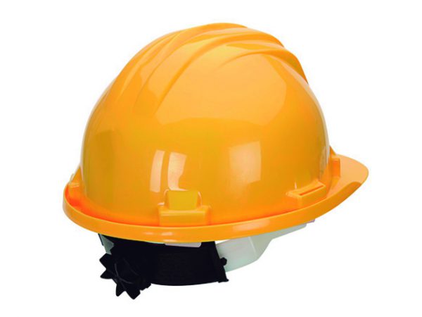Descripción: Casco de protección compuesto por casquete y arnés para caídas de objetos y descargas eléctricas hasta una tensión de 1000 V en ac. Casquete: fabricado por inyección de polietileno de alta densidad. Provisto de visera y de ala con recogeaguas. Seis alojamientos para fijar el arnés. Arnés: fabricado por inyección de polietileno lineal con gran capacidad de absorción de impactos. Ajuste mediante rueda dentada y atalaje basculante.
