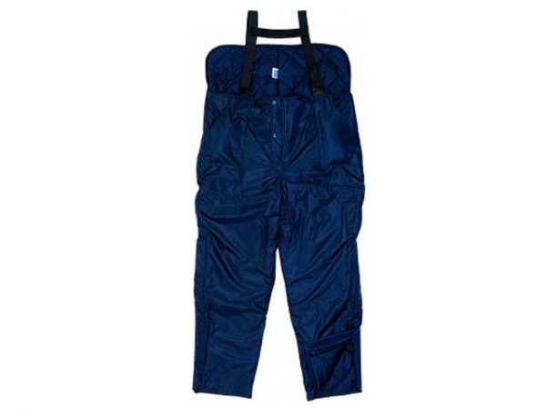 Descripción: Pantalón antifrio. Protección con espaldera. Ajuste mediante elástico. Sujeción por tirantes. Fuelle en los bajos. Composición: nailon acolchado forrado de poliamida.