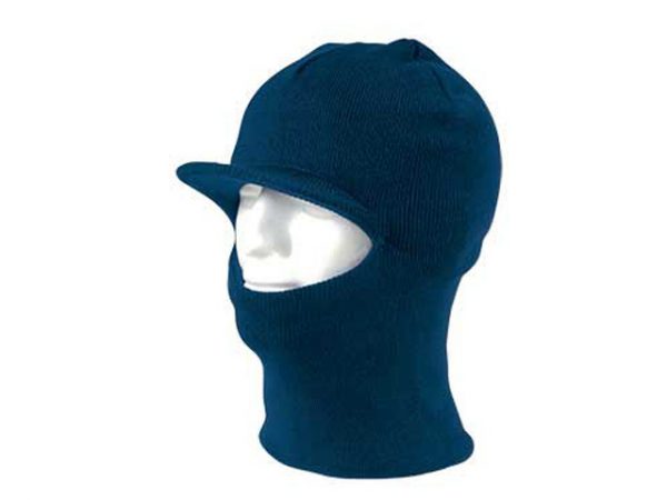 Descripción: Pasamontañas fabricado en punto 100% acrílico. Cálido y confortable. Con abertura para ojos y nariz. Visera rígida recubierta del mismo tejido. Permite cubrir y proteger toda la cabeza, incluyendo el cuello.